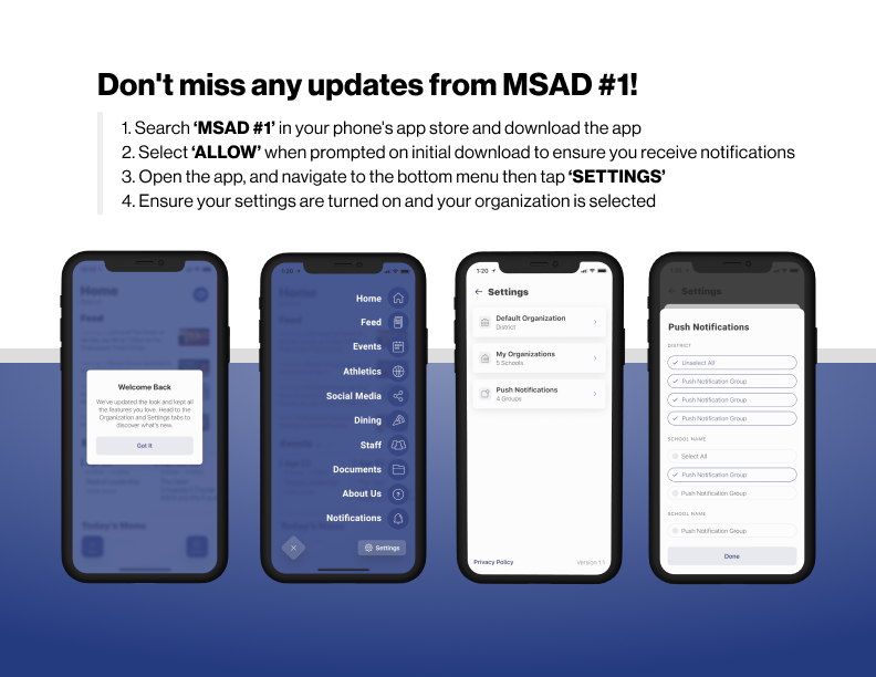 Stay up-to-date with all MSAD #1 news and download the MSAD #1 Mobile App.